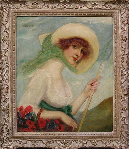 Dimensions: unframed: 27 1/4" x 22 7/8", framed: 34 5/8" x 30 1/8" Hervé is best known as a portrait and genre painter. Starting in 1903, he exhibited his work at the Salon des Artistes Français in Paris. His work is in collections in London, Paris and the United States. |