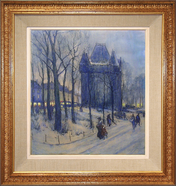 Vermeire is recognized as a pastellist and as an oil painter. This atmospheric pastel entitled "La Porte de Hal" in Brussels was done in the
