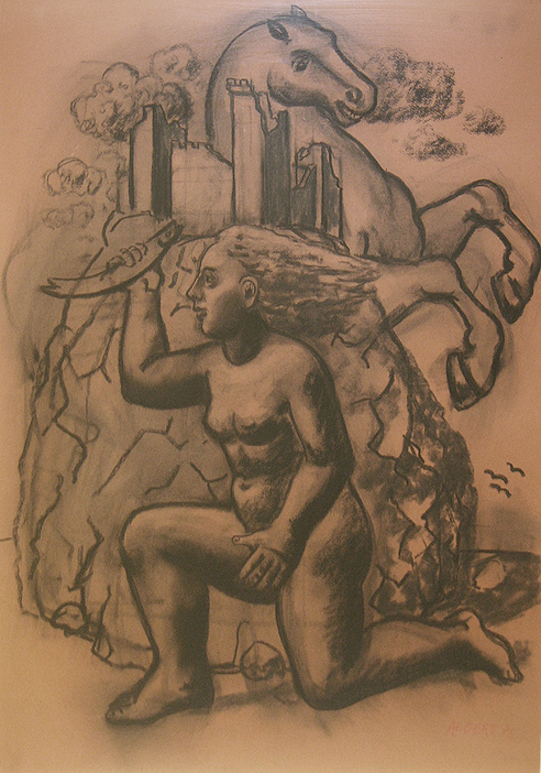 Charcoal drawing. Hand signed and dated “Albert ‘85” lower right. In very good condition. Sheet size: 38 1/2” x 27 1/2”