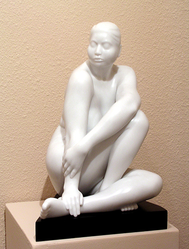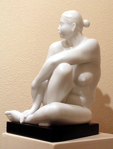 White marble sculpture on a two inch black wood base. Signature and date incised in the stone "Amaya 2004".