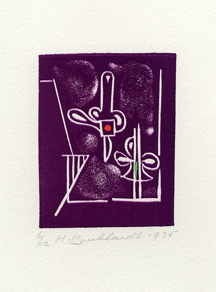 Original linoleum cut on wove paper. Hand signed, numbered and dated in pencil "6/12 H.Burkhardt 1975", lower margin. In excellent condition. Image size: 3 1/4" x 2 1/2", sheet size: 15 3/8" x 10 1/2"