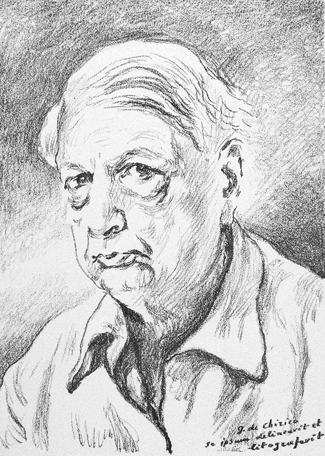 Original lithograph printed in black ink. Signed in the stone, lower right: "G. de Chirico" and annotated by the artist in Latin "drawn and lithographed", this selfportrait was created specifically for the de Chirico's catalogue raisonnee of his graphic works by A. Ciranna to be included as a frontice piece. An impression from the edition of 1500, apart from the hand signed and numbered edition of 196 and 4 proofs numbered in Roman numerals. Printed by Giorgio Upiglio, Milan, Italy. Published by Edizioni La Medusa, Rome, Italy. In very good condition. |