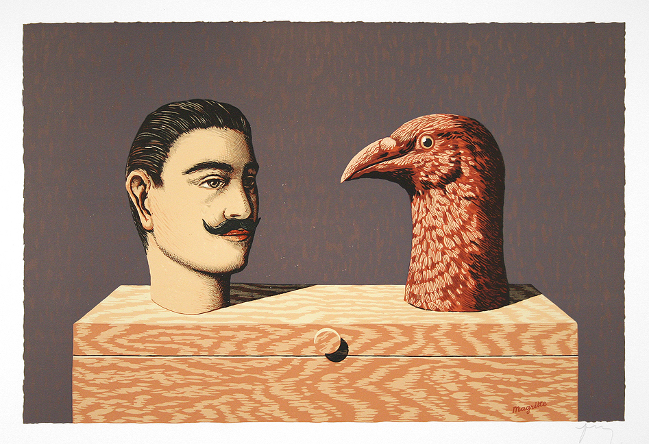The second category is comprised of a mere 15 graphic works drawn on the plate with the help of the master printmaker George Visat, from an original composition submitted by Magritte designated exclusively for this purpose. Most of the etchings in the 2nd category were published posthumously and stamped with a reproduction of the artist’s signature. While the images from the first 2 categories of prints contain similar themes to those portrayed in other media, all of these graphic works were in fact specifically created for these editions.