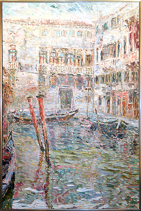 Oil on linen. Hand signed in lower right and on back: "Sassone."