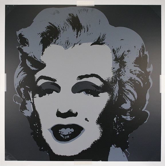 Color screenprint on museum board with the highest quality archival inks, (from a set of 10) after the original Marilyn Monroe screenprints by Andy Warhol. Stamped in blue ink, "Published by Sunday B. Morning" and "fill in your own signature," verso. Published by Sunday B. Morning. In excellent condition. |